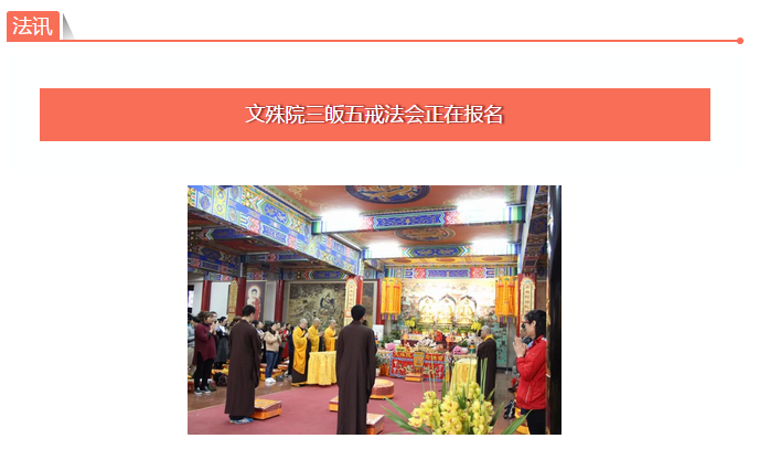 皈依三宝是学佛的入门,受持五戒是精进修行的基础。相遇是一件美好的事情,这一天,你终于来了。文殊院一年一度的三皈五戒法会已经进入倒计时啦!
